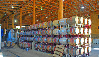 The over-all effect is stunning. The floor is huge, and you can begin to get a sense of it's scope in the photo above. Below this floor is the new barrel aging room. Moe shared that his daughter, Tahmiene, had asked him to build a barrel cave in the hillside just opposite the new facility. "I told her that wasn't going to happen." Moe said. The new barrel area required some tricky excavation, but will remain at the perfect temperature throughout the year without added air conditioning or heating. There is a natural spring just under the floor. The water that accumulates in the sump naturally adds moisture to the air so that less wine will be lost to evaporation. The evaporation is often called "the angles share."